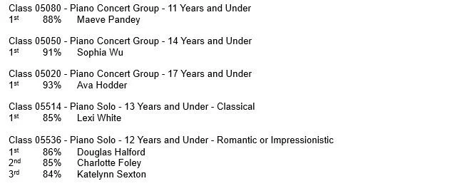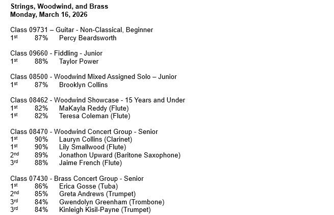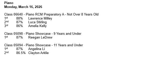 FESTIVAL RESULTS - MONDAY, MARCH 16TH