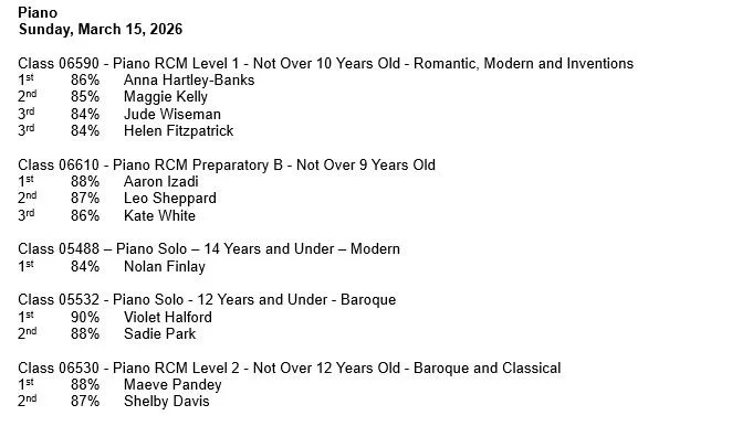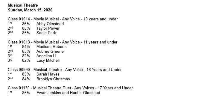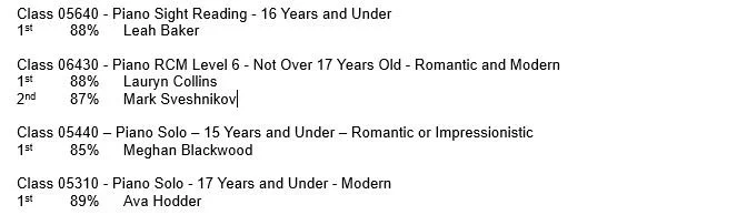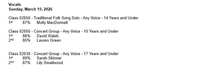 Festival Results, Saturday, March 14th